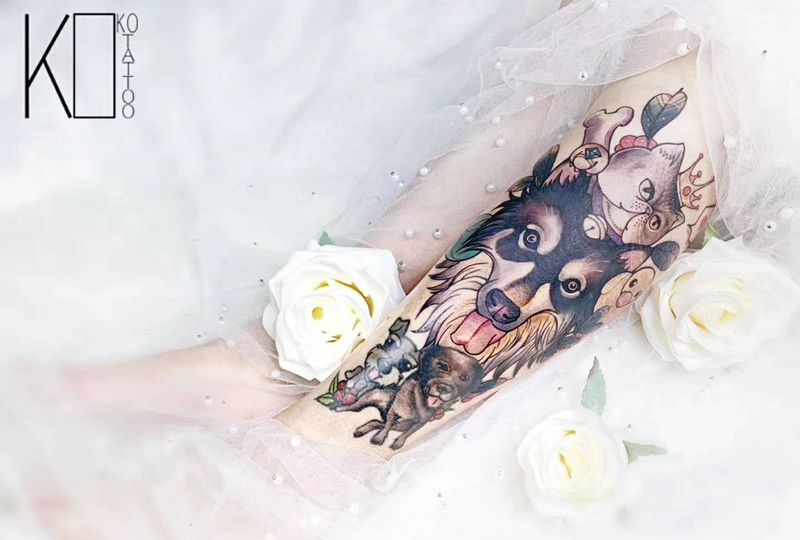 当前位置: 首页 >湖北省武汉市纹身店-KOKO TATTOO原创定制纹身店纹身图案>宠物纹身图片_腿部水彩宠物狗猫纹身图案