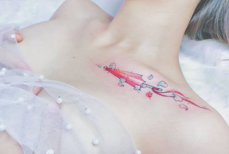 保护伞纹身图片_肩部水彩水墨定制水彩古风纹身图案