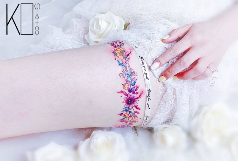 当前位置: 首页 >湖北省武汉市纹身店-KOKO TATTOO原创定制纹身店纹身图案>腿环纹身图片_腿部水彩腿环花卉水彩纹身图案