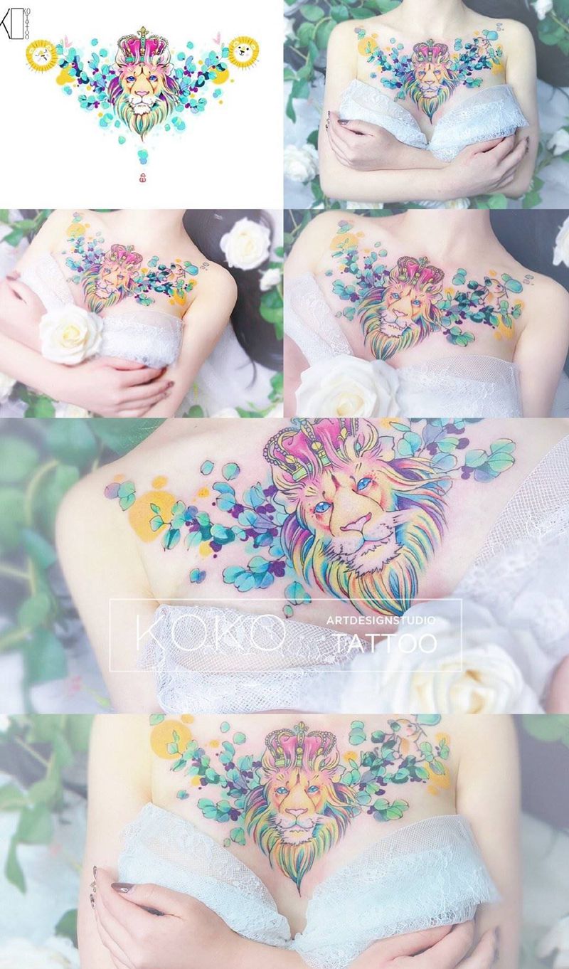 当前位置: 首页 >湖北省武汉市纹身店-KOKO TATTOO原创定制纹身店纹身图案>狮子——添加修改纹身图片_胸部水彩狮子尤加利叶修改纹身图案