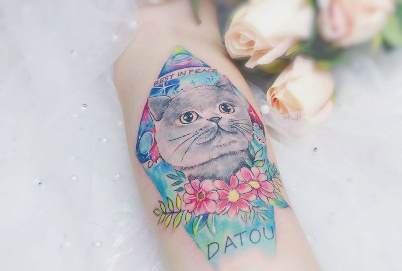 当前位置: 首页 >湖北省武汉市纹身店-KOKO TATTOO原创定制纹身店纹身图案>小蓝猫纹身图片_手臂水彩几何猫定制设计水彩纹身图案