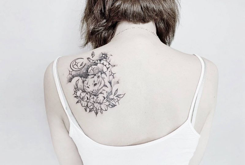 小老虎——遮盖纹身图片_背部点刺小老虎遮盖小清新纹身图案