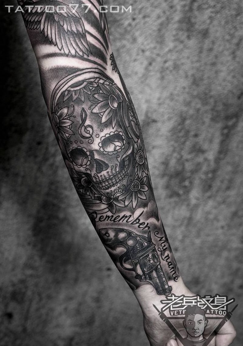 当前位置: 首页 >湖北省武汉市纹身店-武汉老兵纹身店纹身图案>帅气的欧美花臂骷髅女郎纹身作品纹身图片_成品手臂欧美人物纹身图案
