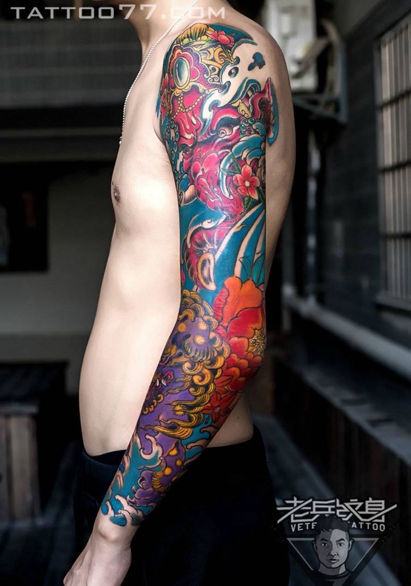 当前位置: 首页 >湖北省武汉市纹身店-武汉老兵纹身店纹身图案>花臂象神唐狮纹身作品纹身图片_成品手臂传统动物纹身图案