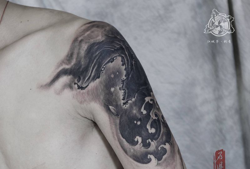 当前位置: 首页 >湖北省武汉市纹身店-武汉江城子刺青纹身图案>山水小景纹身图片_手臂水墨新传统纹身图案