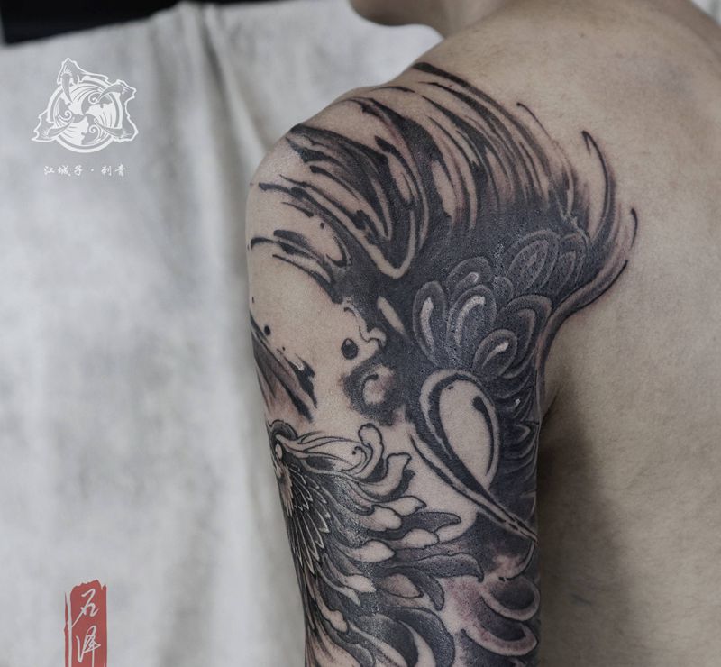 当前位置: 首页 >湖北省武汉市纹身店-武汉江城子刺青纹身图案>水墨·凤凰纹身图片_手臂水墨凤凰水墨花臂纹身图案
