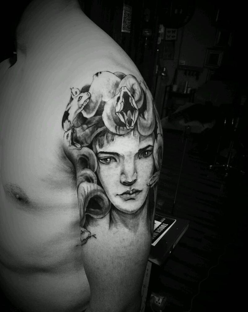 当前位置: 首页 >湖北省武汉市纹身店-武汉江城子刺青纹身图案>美杜莎纹身图片_手臂欧美肖像人物鬼神成品纹身图案