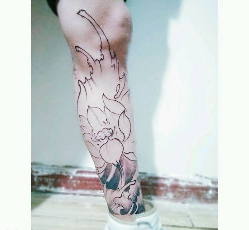 当前位置: 首页 >湖北省武汉市纹身店-武汉江城子刺青纹身图案>日式传统包小腿纹身图片_腿部传统人物植物原创成品纹身图案
