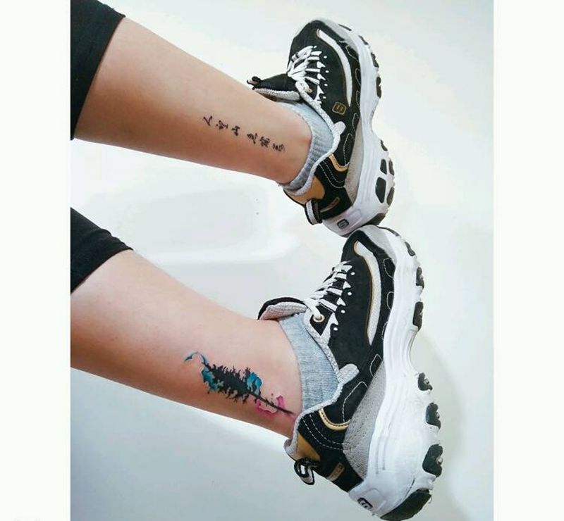 汉字纹身图片_腿部传统国画字符原创中国风成品纹身图案