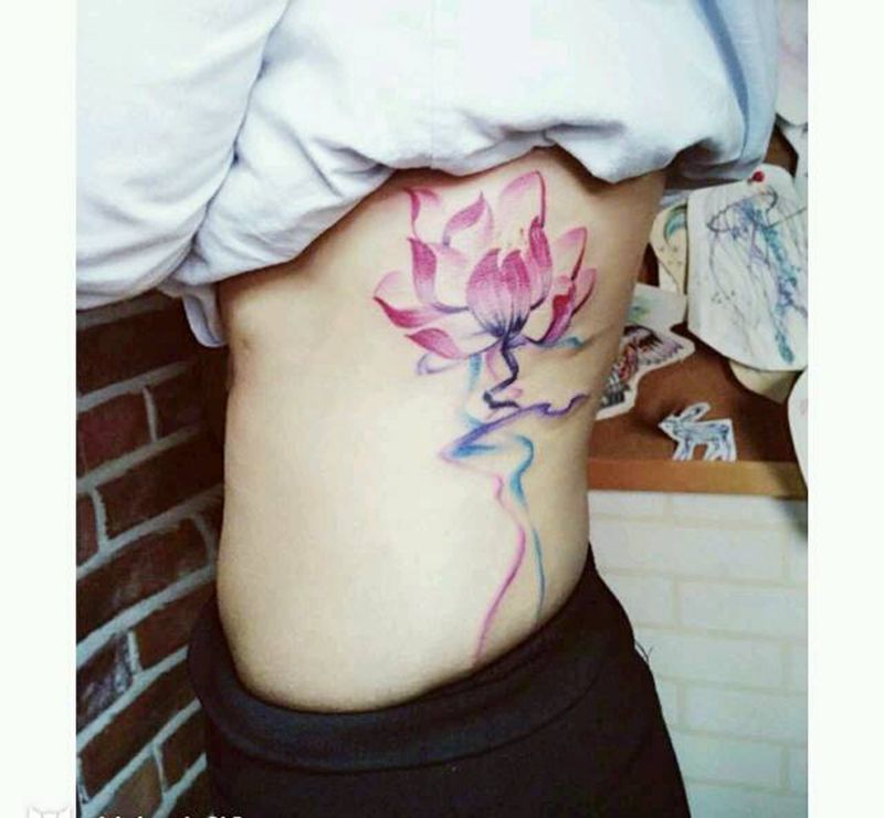 当前位置: 首页 >湖北省武汉市纹身店-武汉江城子刺青纹身图案>水彩_莲花纹身图片_腰部清新植物水彩中国风成品纹身图案