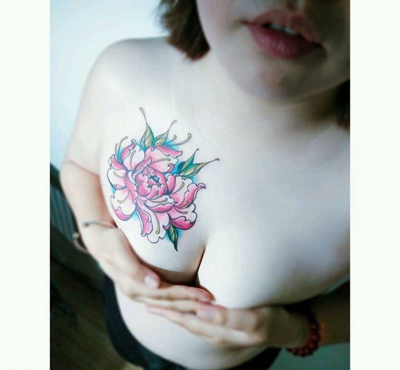 • 女性大花胸纹身_43张霸气漂亮的女性大花胸纹身图案作品