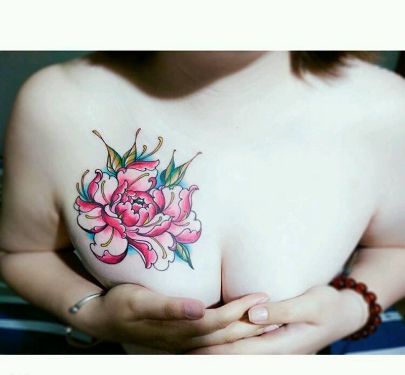 • 女性大花胸纹身_43张霸气漂亮的女性大花胸纹身图案作品