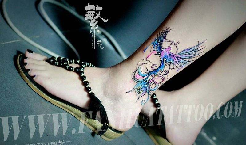 当前位置: 首页 >湖北省武汉市纹身店-武汉江城子刺青纹身图案>水彩凤凰纹身图片_腿部清新动物水彩成品纹身图案