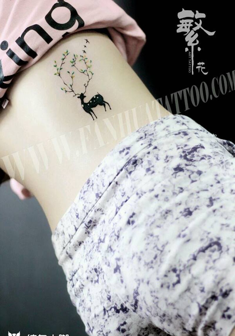 当前位置: 首页 >湖北省武汉市纹身店-武汉江城子刺青纹身图案>鹿纹身图片_腰部清新动物水彩成品纹身图案