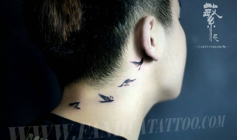 当前位置: 首页 >湖北省武汉市纹身店-武汉江城子刺青纹身图案>飞鸟纹身图片_颈部清新动物成品纹身图案