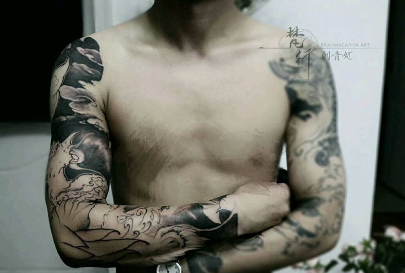 当前位置: 首页 >湖北省武汉市纹身店-武汉江城子刺青纹身图案>花臂半成品纹身图片