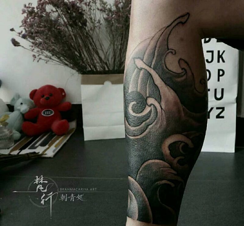 • T网红王老大花腿龙纹身图片_腿部新传统纹身图案
