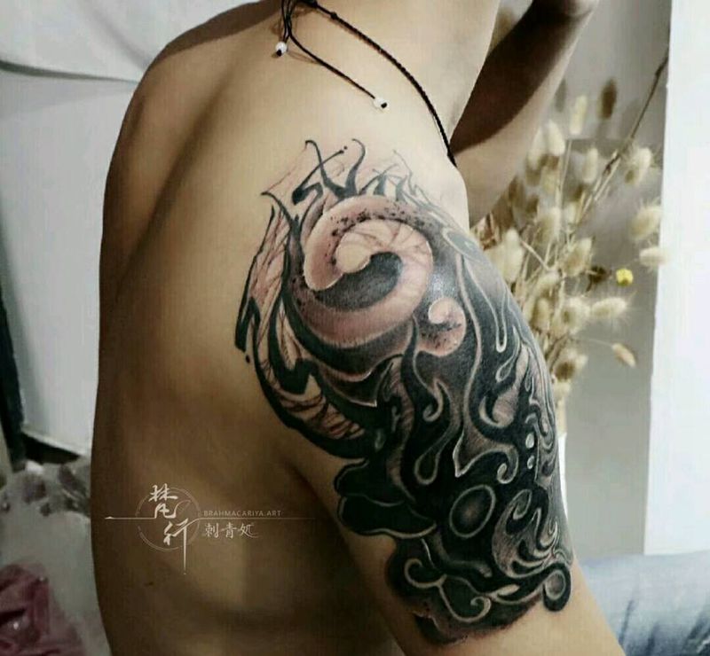 • 纹身吧推荐的披肩图腾半胛纹身图案作品展示