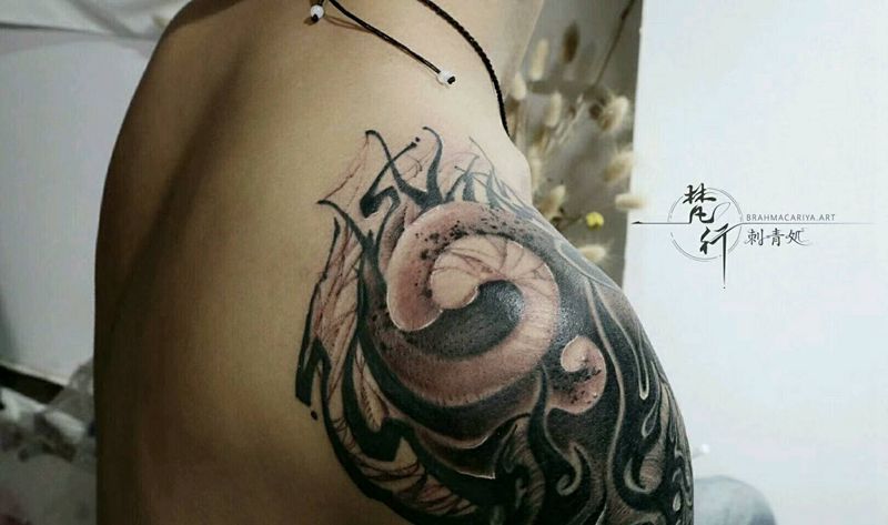 • 纹身吧推荐的披肩图腾半胛纹身图案作品展示