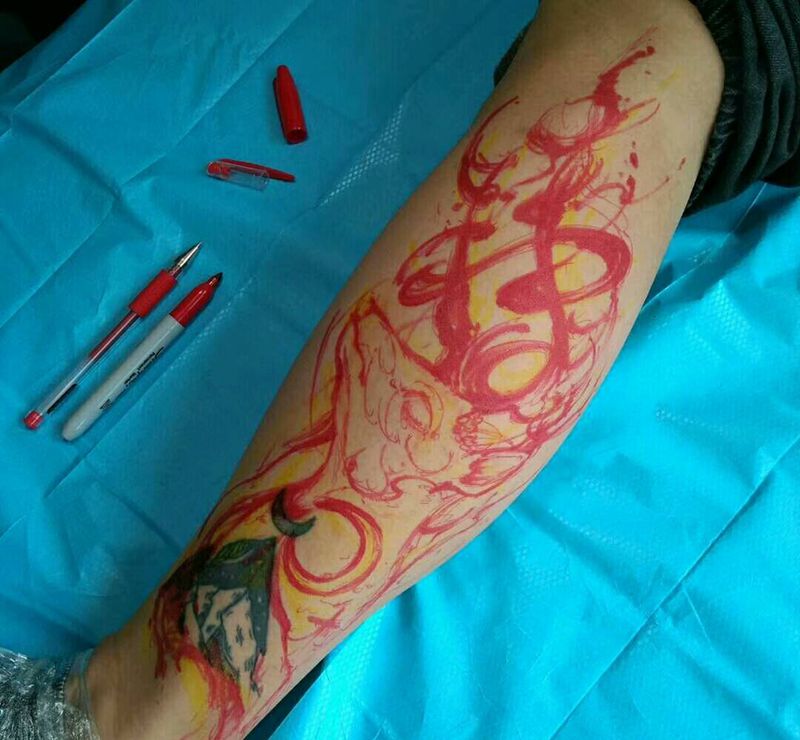 当前位置: 首页 >湖北省武汉市纹身店-武汉江城子刺青纹身图案>遮盖纹身图片_腿部新传统纹身图案