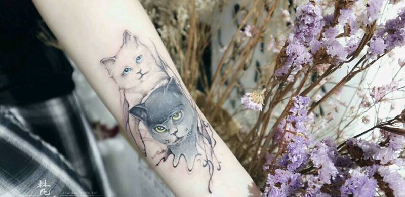 当前位置: 首页 >湖北省武汉市纹身店-武汉江城子刺青纹身图案>猫纹身图片_手臂欧美写实水墨猫纹身图案