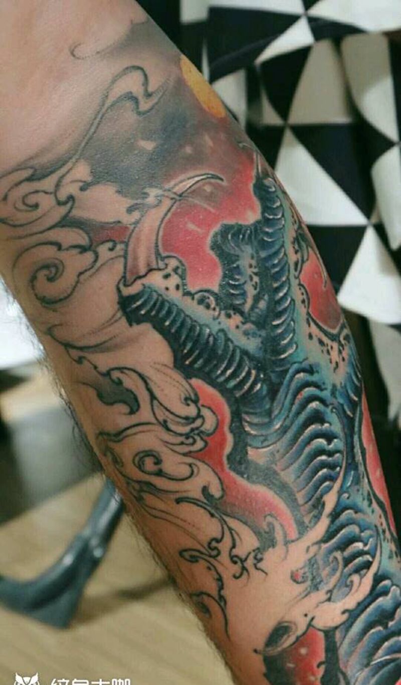 • T网红王老大花腿龙纹身图片_腿部新传统纹身图案