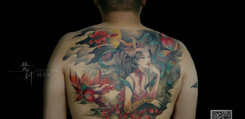 当前位置: 首页 >湖北省武汉市纹身店-武汉江城子刺青纹身图案>貂蝉纹身图片_背部新传统水彩貂蝉纹身图案