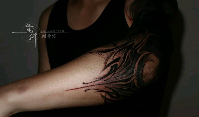当前位置: 首页 >湖北省武汉市纹身店-武汉江城子刺青纹身图案>黑臂平凡之路纹身图片_花体字黑臂花体字纹身图案