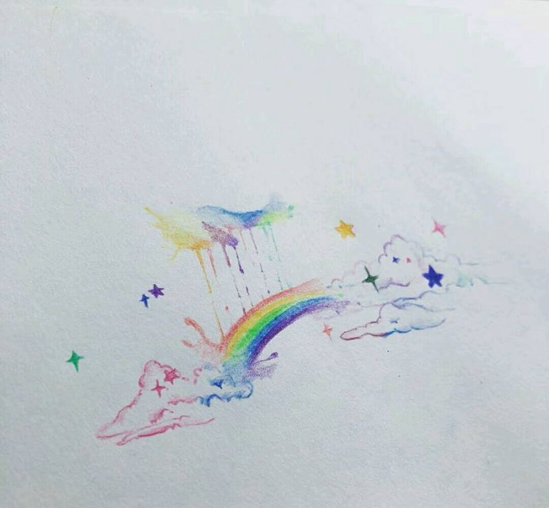 彩虹纹身图片_手臂新传统水彩彩虹星⭐纹身图案