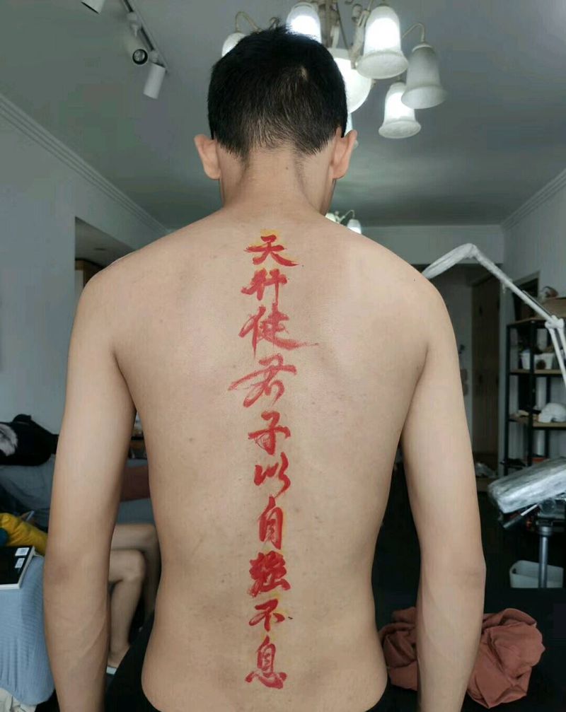 当前位置: 首页 >湖北省武汉市纹身店-武汉江城子刺青纹身图案>书法纹身图片_背部老传统书法汉字纹身图案