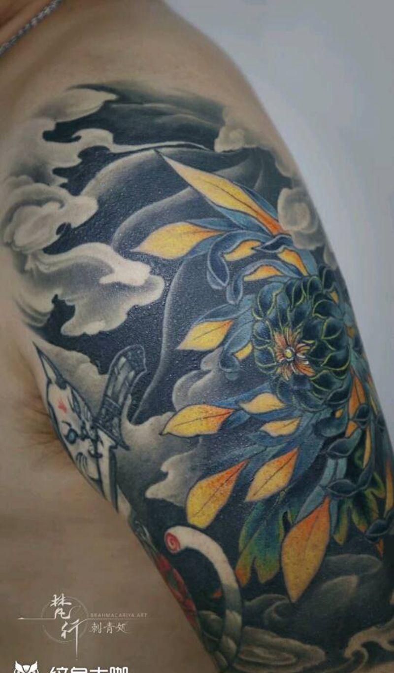 当前位置: 首页 >湖北省武汉市纹身店-武汉江城子刺青纹身图案>猫与菊纹身图片_手臂老传统菊花纹身图案