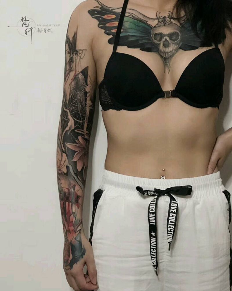 • 女性大花胸纹身_43张霸气漂亮的女性大花胸纹身图案作品
