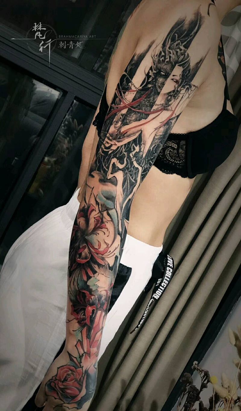 当前位置: 首页 >湖北省武汉市纹身店-武汉江城子刺青纹身图案>花臂纹身图片_手臂新传统彼岸花莲花人物纹身图案