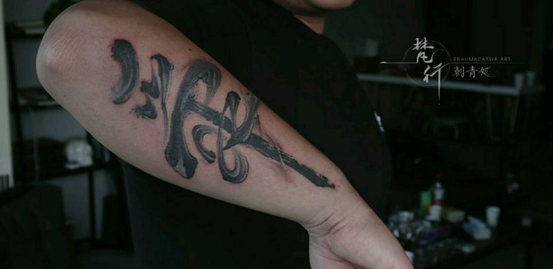 当前位置: 首页 >湖北省武汉市纹身店-武汉江城子刺青纹身图案>书法纹身图片_手臂老传统汉字书法纹身图案