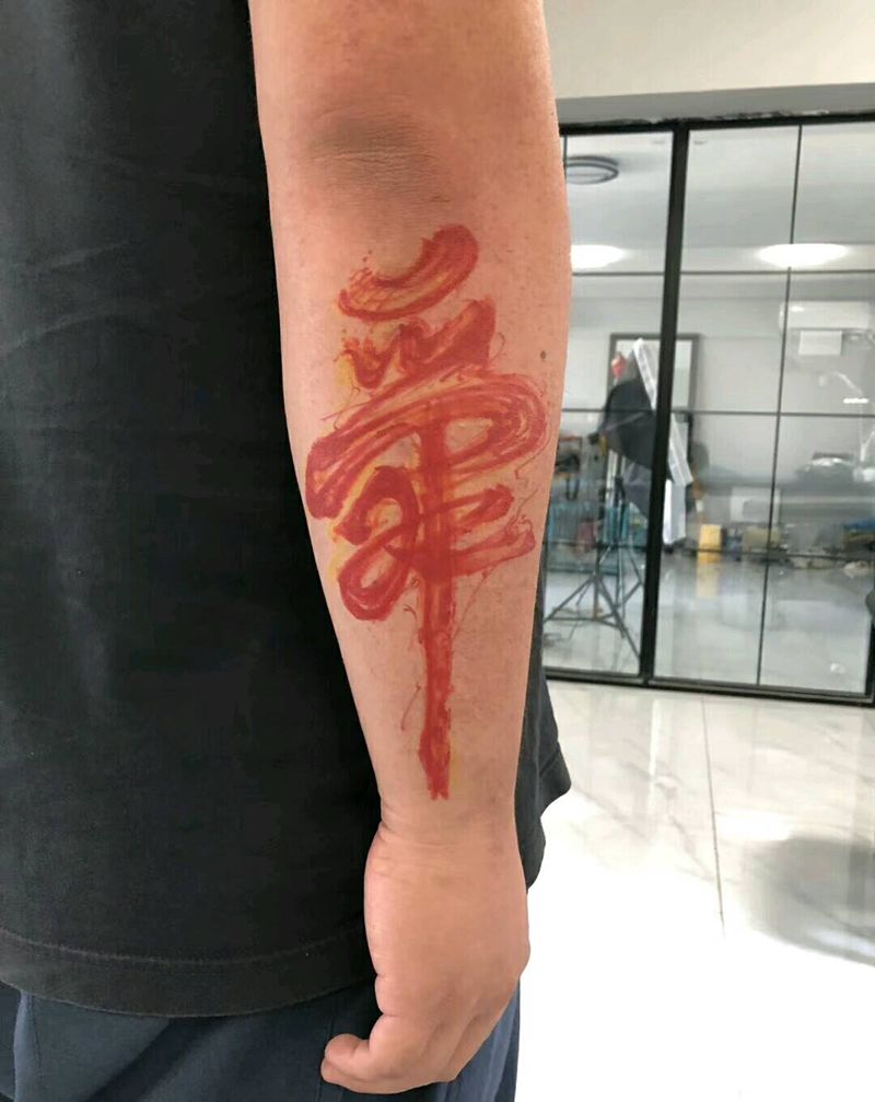 当前位置: 首页 >湖北省武汉市纹身店-武汉江城子刺青纹身图案>书法纹身图片_手臂老传统汉字书法纹身图案