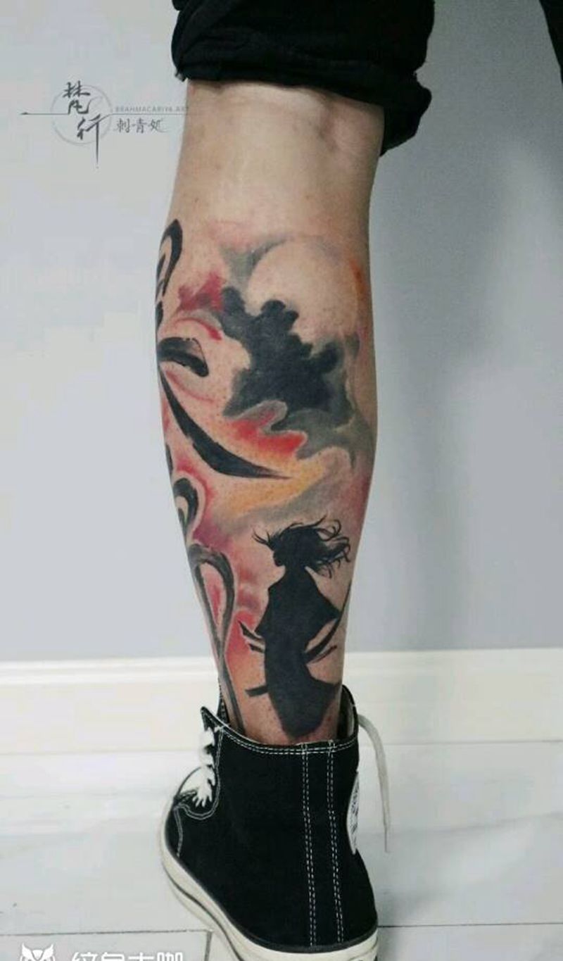当前位置: 首页 >湖北省武汉市纹身店-武汉江城子刺青纹身图案>书法纹身图片_腿部老传统书法汉字纹身图案