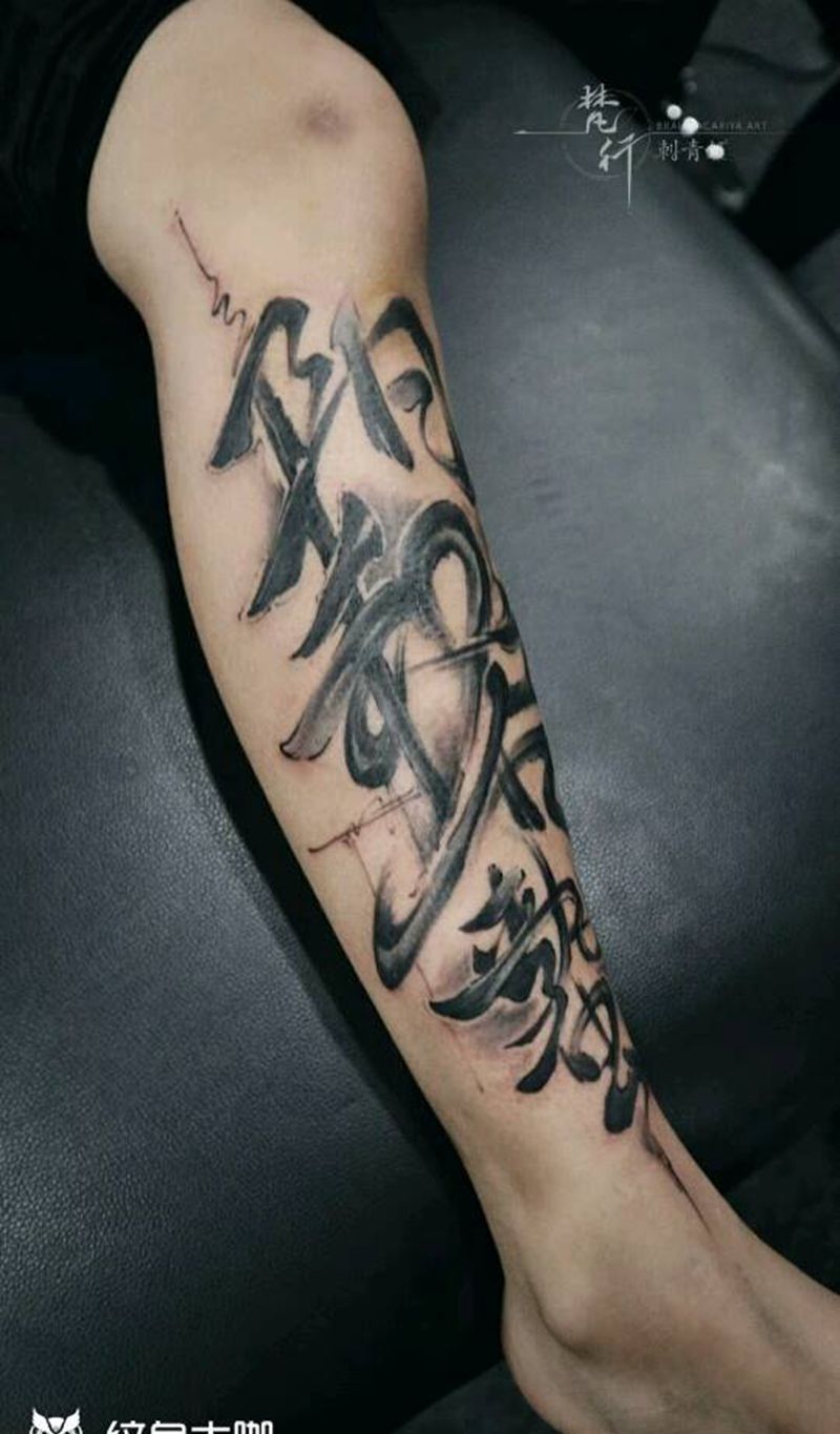 当前位置: 首页 >湖北省武汉市纹身店-武汉江城子刺青纹身图案>书法纹身图片_腿部老传统汉字书法纹身图案