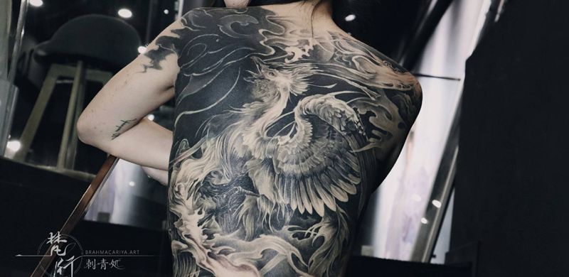 黑灰满背纹身图案