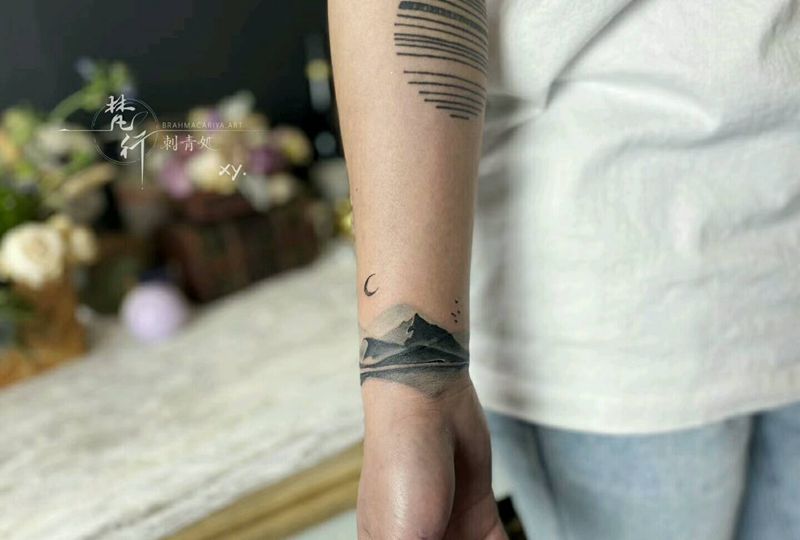 当前位置: 首页 >湖北省武汉市纹身店-武汉江城子刺青纹身图案>遮盖纹身图片_手臂水墨山水纹身图案