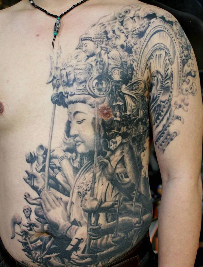 黑灰满背纹身图案