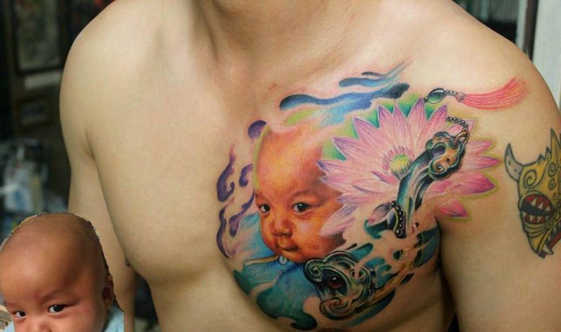 • 男性大花胸_42张优秀的男性大花胸纹身图案图片