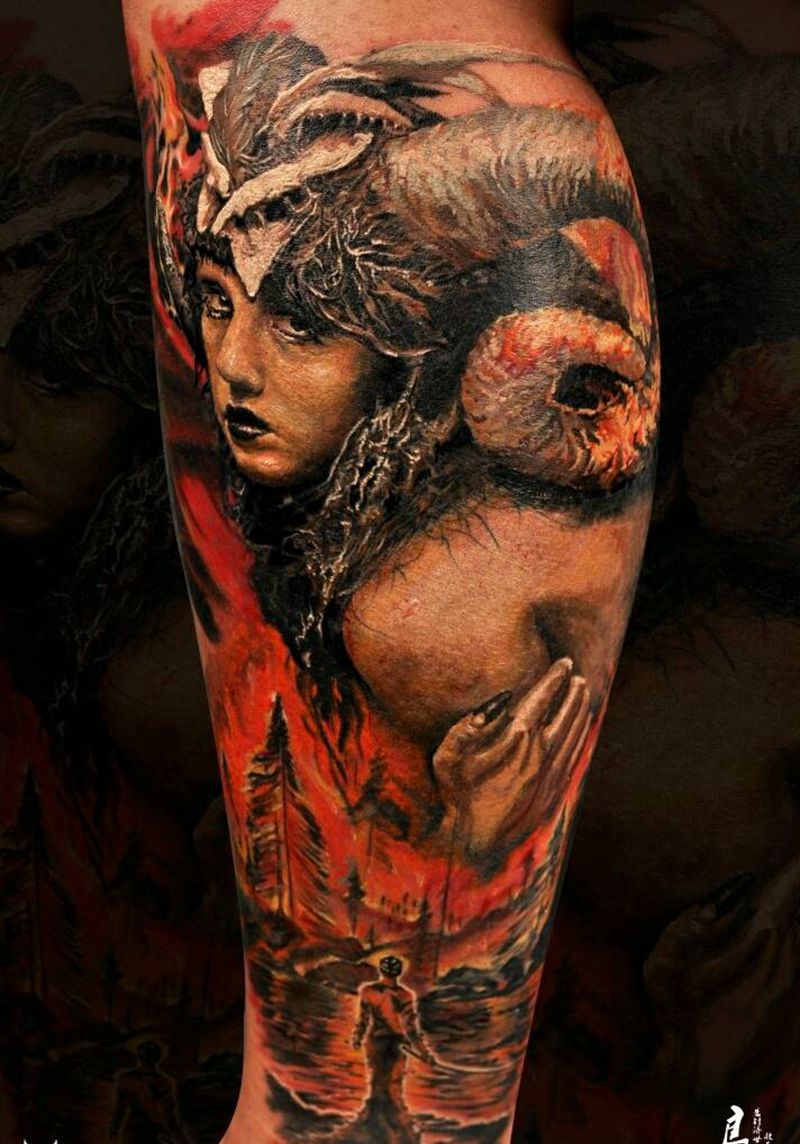 当前位置: 首页 >湖北省武汉市纹身店-芝士刺青CHEESETATTOO纹身图案>小腿 兽女纹身图片_腿部欧美写实彩色写实纹身图案
