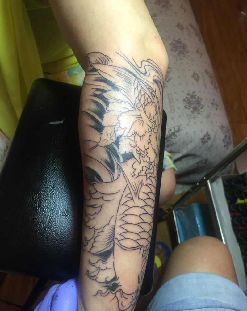 今日日式包小臂鲤鱼作品 未完待续…纹身图片