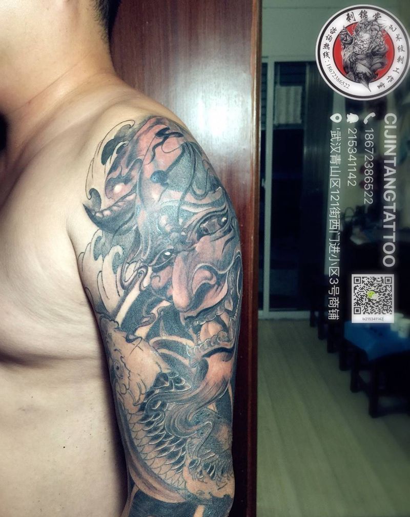 当前位置: 首页 >湖北省武汉市纹身店-刺锦堂纹身纹身图案>般若七分袖纹身图片