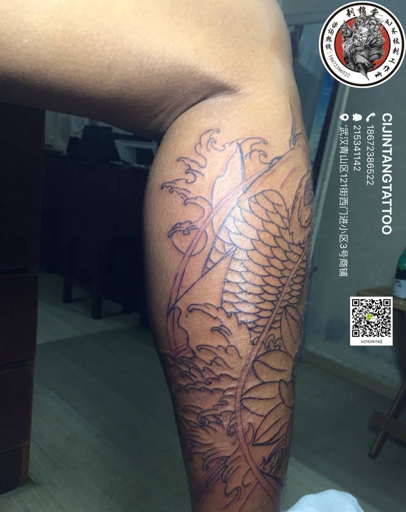 当前位置: 首页 >湖北省武汉市纹身店-刺锦堂纹身纹身图案>鲤鱼小腿线条完成纹身图片