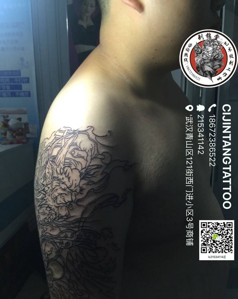 当前位置: 首页 >湖北省武汉市纹身店-刺锦堂纹身纹身图案>雷神 线条基本完成纹身图片