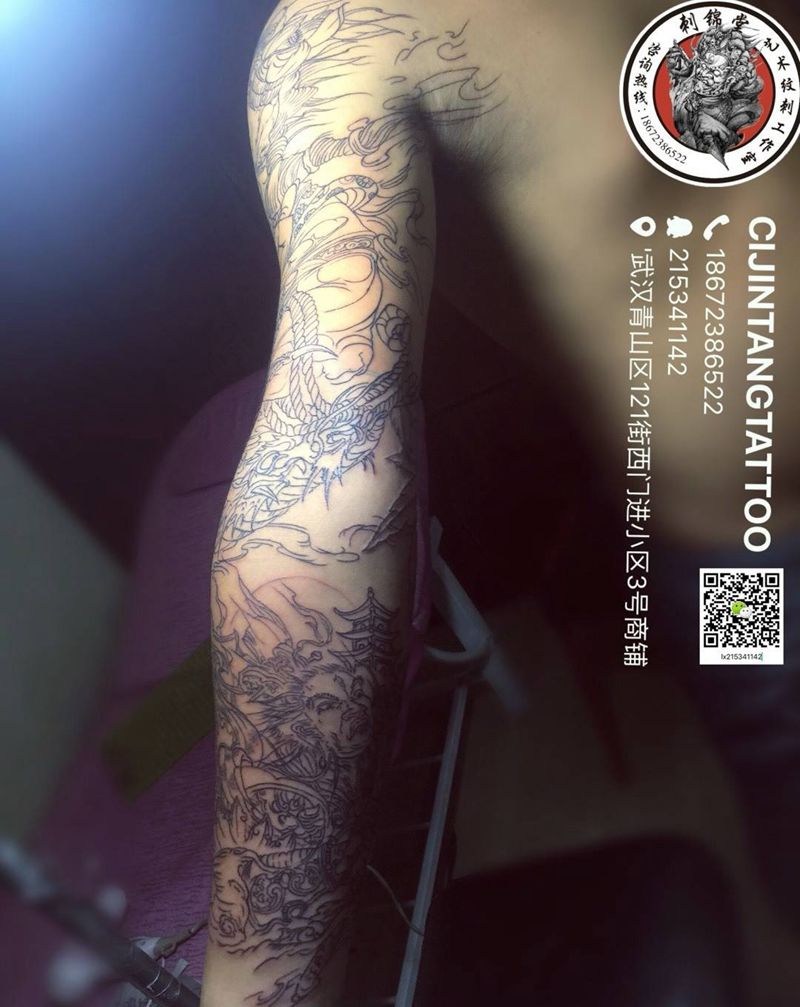 当前位置: 首页 >湖北省武汉市纹身店-刺锦堂纹身纹身图案>花臂线条完成纹身图片