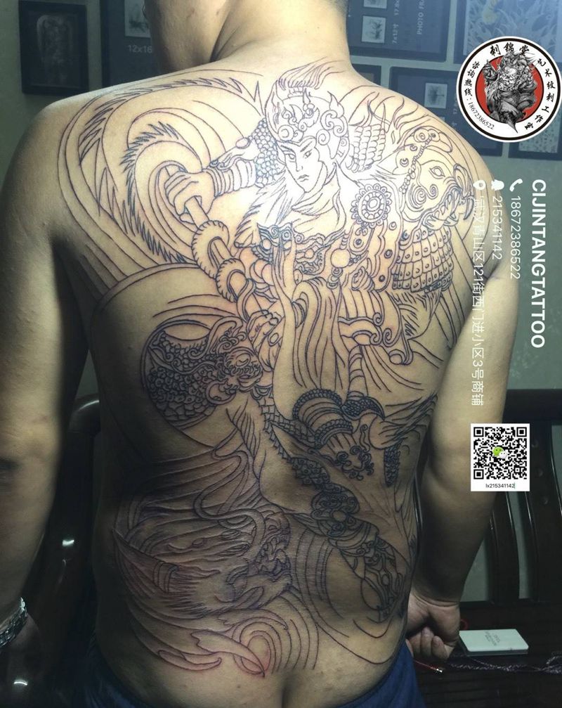 当前位置: 首页 >湖北省武汉市纹身店-刺锦堂纹身纹身图案>满背战神 线条完成纹身图片