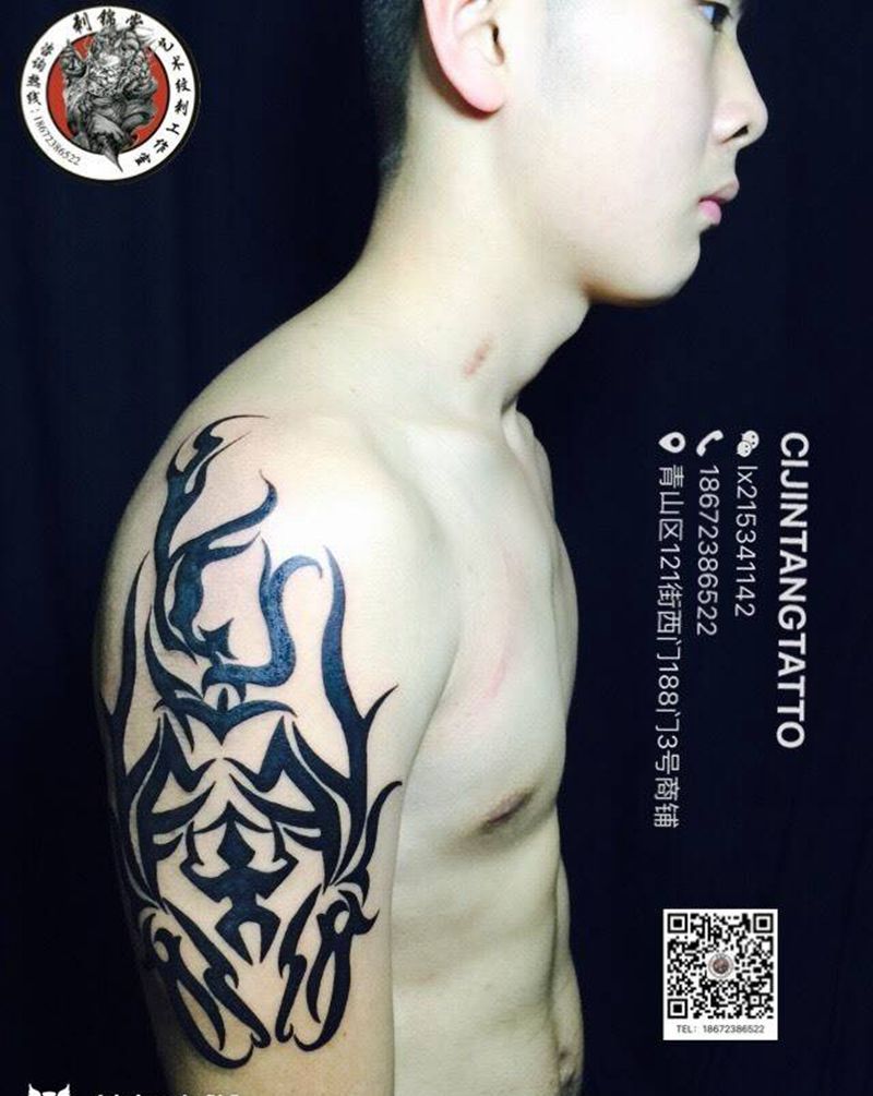 • 纹身吧推荐的披肩图腾半胛纹身图案作品展示