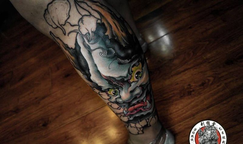 • T网红王老大花腿龙纹身图片_腿部新传统纹身图案